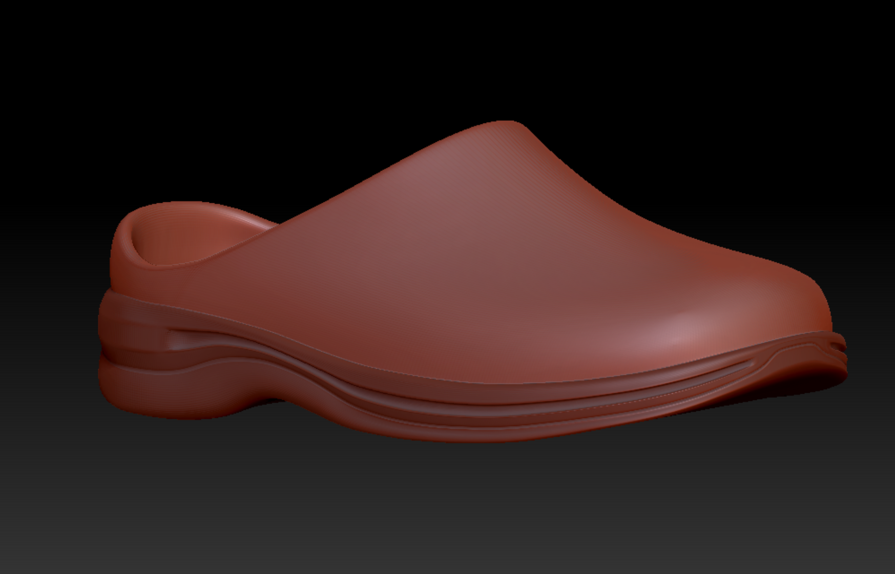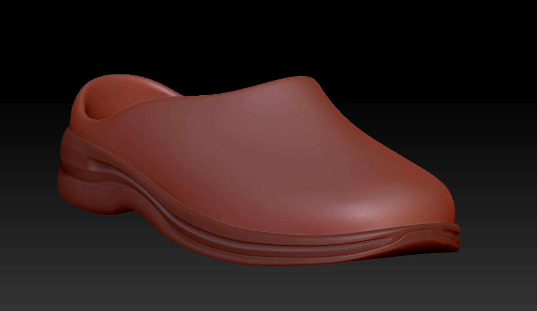 -Using Blender and ZBrush, I created the form and details of the shoe with modeling, sculpting, booleans, and retopology processes